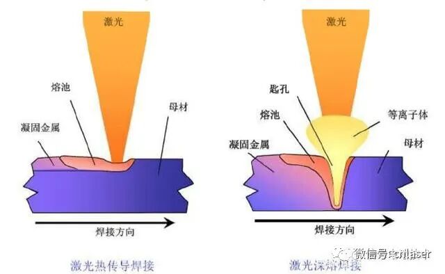 热传导焊接和深熔焊的主要区别在于单位时间内施加在金属表面的功率密度,不同金属下临界值不同。