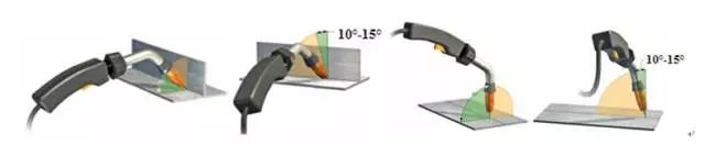 行走角小时,具有熔深大、熔池保护效果好的特点;行走角大时,具有熔深小、熔池保护效果差的特点,行走角为10°~15°时,熔池保护效果良好。