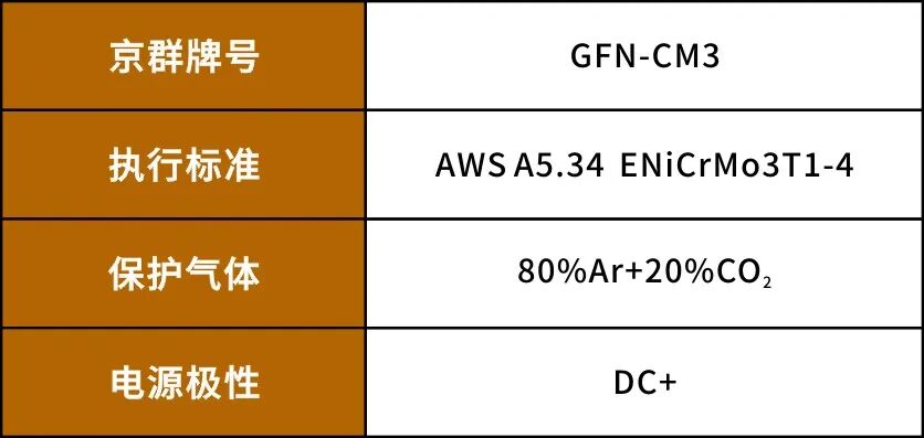Inconel625合金作为一种性能优异的镍基合金,在现代工业中应用十分广泛,通常采用NiCrMo-3类型的焊材焊接。京群GFN-CM3镍基合金药芯焊丝,具有良好的焊接操作性,并能够实现高效全位置焊接。