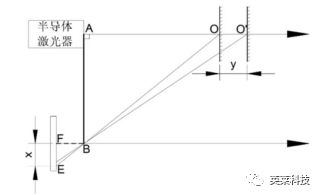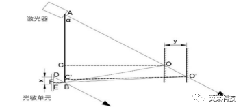 在确定系统的光路时,可将CCD位置传感器的一个轴与基线AB平行(假设为y轴),则由通过算法得到的激光光点像素坐标为(Px,Py)可得到x的值为:
