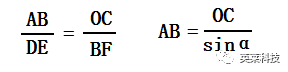 由上图可知入射光AO与基线AB的夹角为α,AB为激光器中心与CCD中心的距离,BF为透镜的焦距f,D为被测物体距离基线无穷远处时反射光线在光敏单元上成像的极限位置。DE为光斑在光敏单元上偏离极限位置的位移,记为x。当系统的光路确定后,α、AB与f均为已知参数。由光路图中的几何关系可知△ABO∽△DEB,则有边长关系: