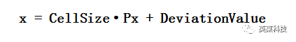 其中CellSize是光敏单元上单个像素的尺寸,DeviationValue是通过像素点计算的投影距离和实际投影距离x的偏差量。当被测物体与基线AB产生相对位移时,x改变为x′,由以上条件可得被测物体距离y为: